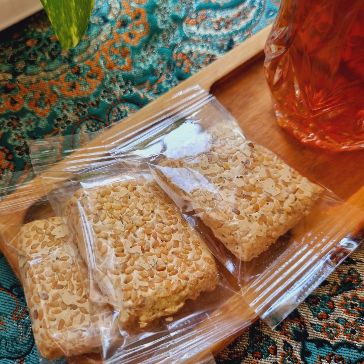 شکلات رژیمی ترکیبی است از: شیره سنتی خرما و کنجد محلی جنوب این شکلات سرشار از آهن و کلسیم است. این شکلات با کنجدِ محلی تولید میشه. دونه های سیاهی که توشون میبینین؛ دلیلش استفاده از کنجدِ خوش عطر و پرخاصیتِ محلیه. با شیره سنتیِ خرما شیرین شده.. و رنگِ کرم رنگش شیره خرماست که با طیِ مراحلی از رنگِ سیاه به رنگِ کِرِم تغییر رنگ میده. مقوی - خوشمزه - بسته بندی لقمه ای - بمب کلسیم - منبع آهن - بدون مواد نگهدارنده - بدون شکر - بدون روغن - بدون آرد.